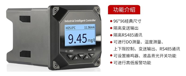 MIK-DM2800型工業在線溶解氧儀是我公司生產的在線電化學分析儀之一,為高智能化在線連續監測儀。工業溶氧儀采用帶背景光LCD顯示,具備錯誤指示;自動溫度補償;隔離式4-20 mA電流輸出;雙組繼電器控制,高低點報警指示;掉電記憶,無需后備電池,資料保存十年以上。可以配DOG-208F(ppb級)極譜式電極,自動實現ppm全量程測量,是檢測環保污水等行業的液體中氧含量測量的專用儀器。DOG-209F(ppm級)以響應快、穩定、可靠、使用費用低等特點,適合環保污水等行業大量使用。再加上多功能和直接聯網,使其以“實用、方便、功能完善”等優點在同類產品中獨樹一幟,得到廣泛應用。配DOG-209F (ppm級)電極測量ppm級,只用于環保行業。
